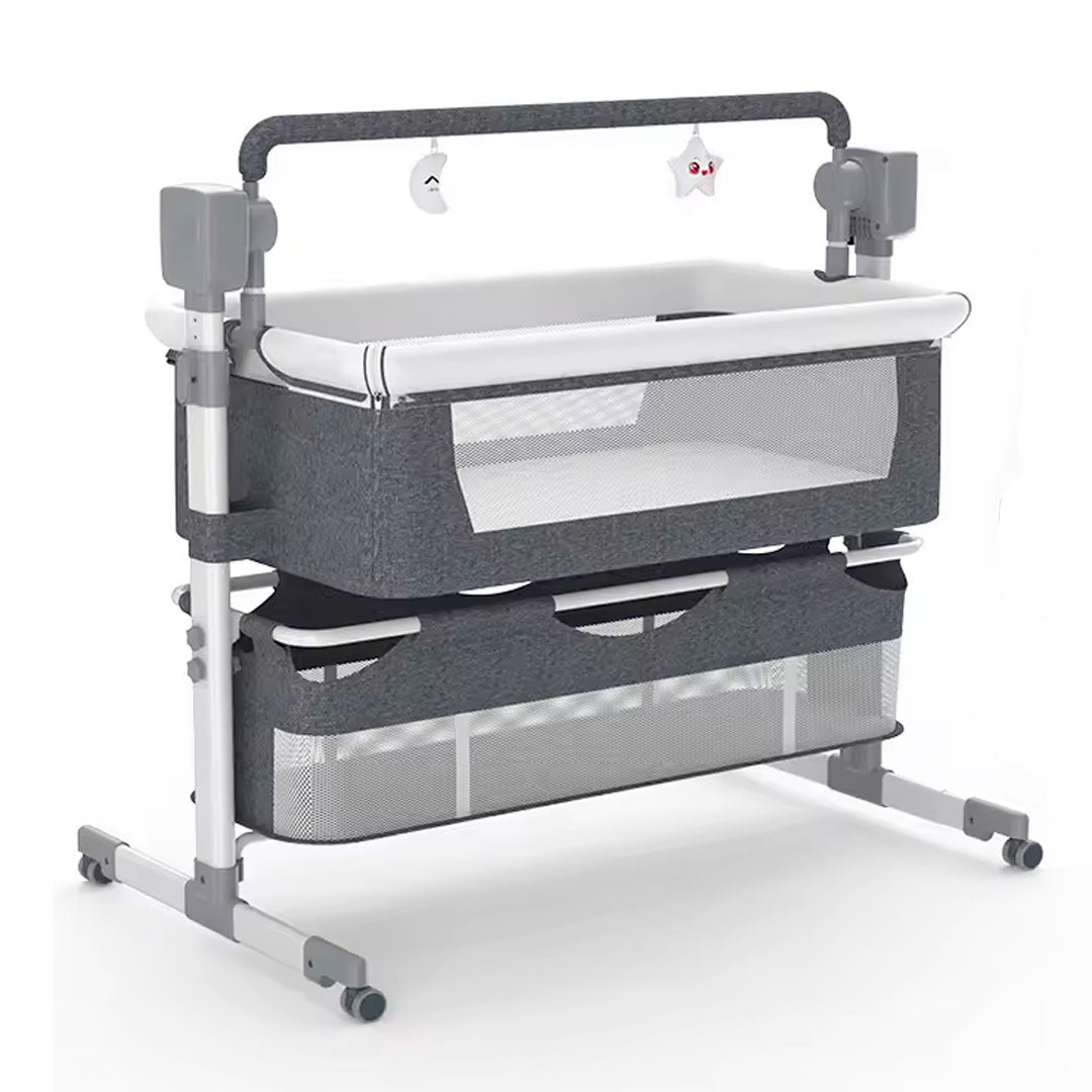 Cuna colecho mecedora para bebé eléctrica con niveles ajustables de altura, música, movimientos y canasta