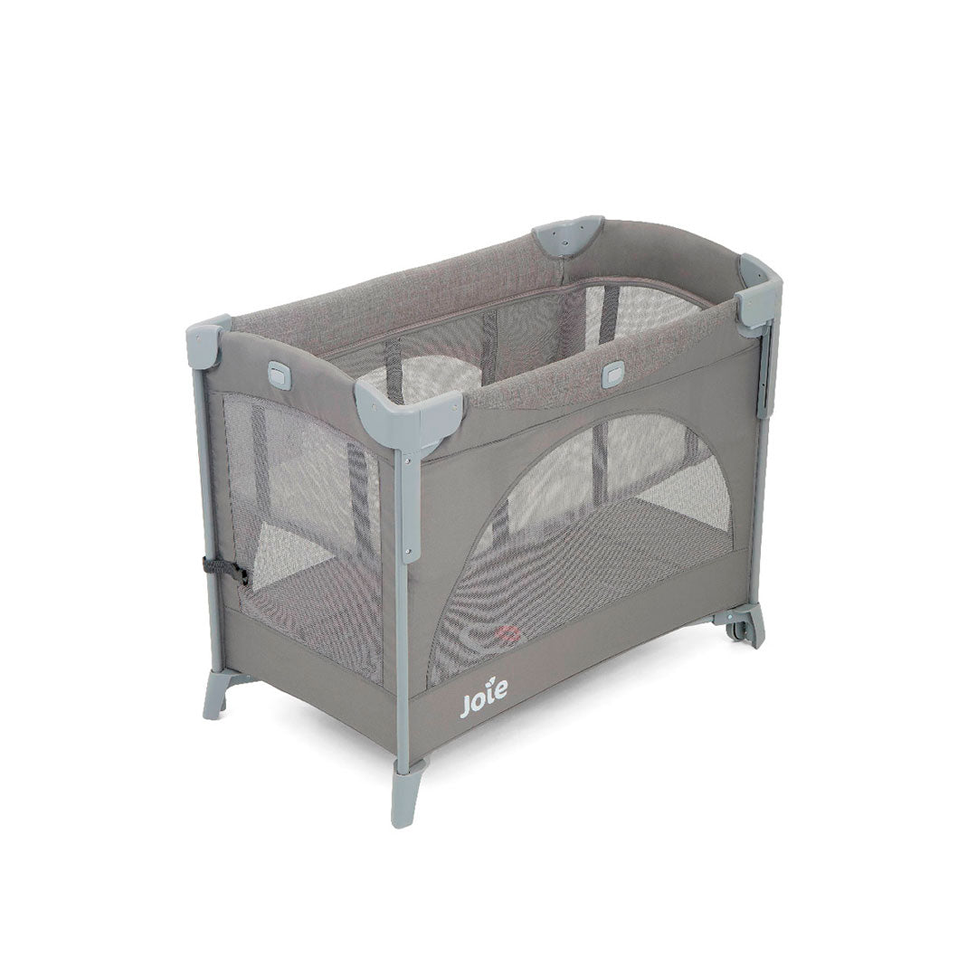 Corral colecho Kubbie Gris dos niveles, con abatible lateral para usarla como colecho, sistema de plegado, con laterales en malla, cierre para ingreso en corral - Joie