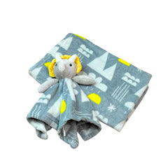 Cobija con apego y diseño estampado para bebé, hecha en materia suave y cálido, con peluche de apego para acompañar al bebé mientras duerme, ideal para coches y cunas - Wakids