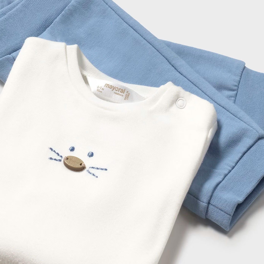 Conjunto 3pz para recién nacido con sudadera, pantalón y camiseta, buzo de manga larga, cierre central delantero con cremallera, camiseta de manga larga, cinturilla elástica - Mayoral