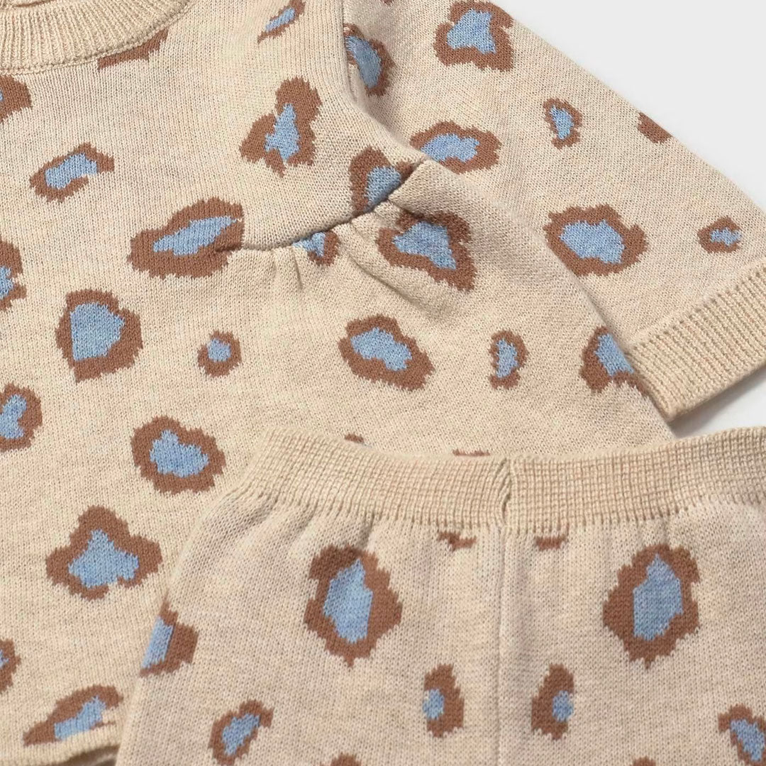 Conjunto pantalón y vestido estampado manchas leopardo, set tejido para recién nacida, cierre con botones en la espalda para facilitar la puesta de la prenda, tejido de punto tricotosa de tacto suave y agradable, cinturilla elástica - Mayoral