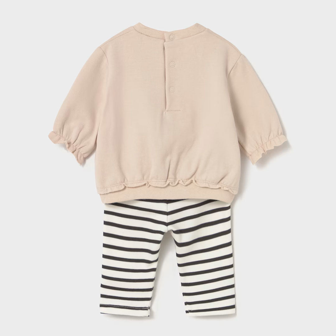 Conjunto de sudadera y pantalón largo para recién nacida, Sudadera de manga larga para recién nacida, cuello redondo, botones a presión en el hombro para facilitar la puesta de la prenda, pantalón tipo legging con cinturilla elástica con cordón - Mayoral