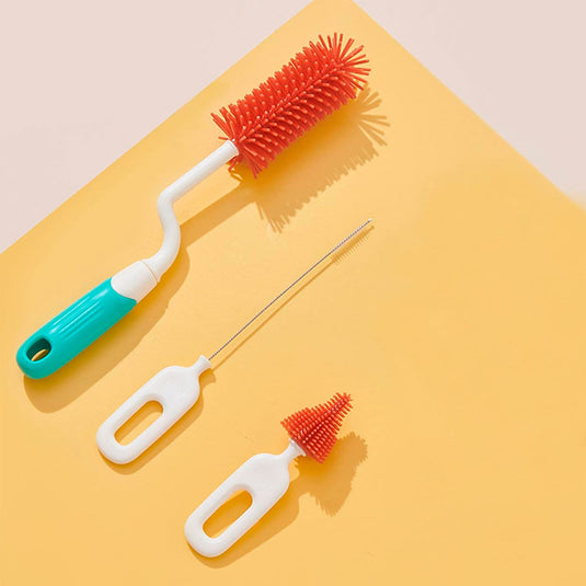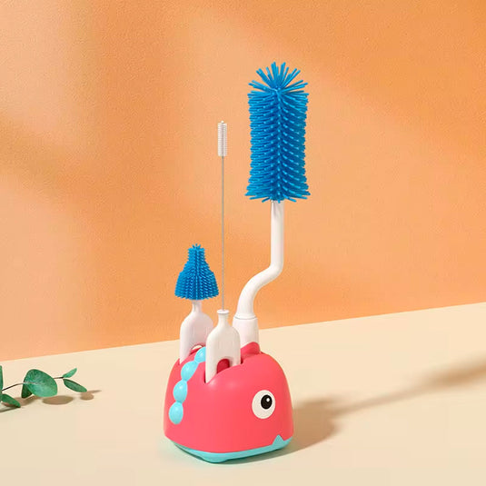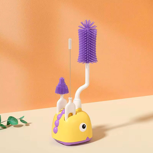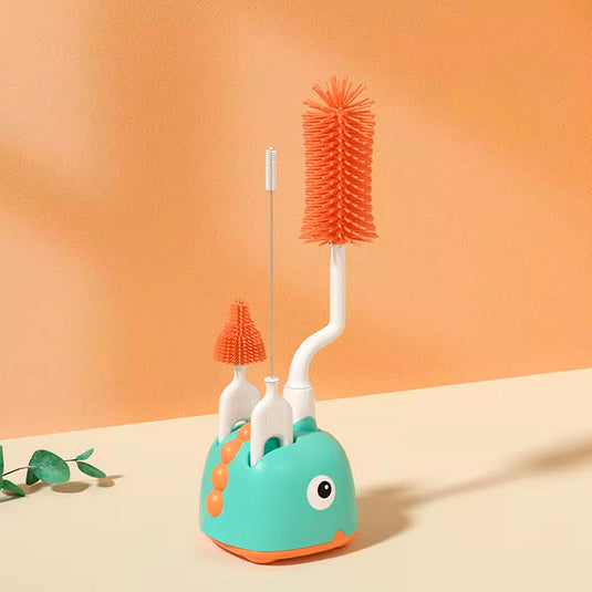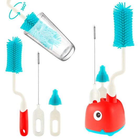Imprescindible para los padres, este Juego de cepillos con soporte para teteros y accesorios está fabricado con cerdas de silicona de grado alimenticio para la seguridad, la salud y la tranquilidad de tu bebé.