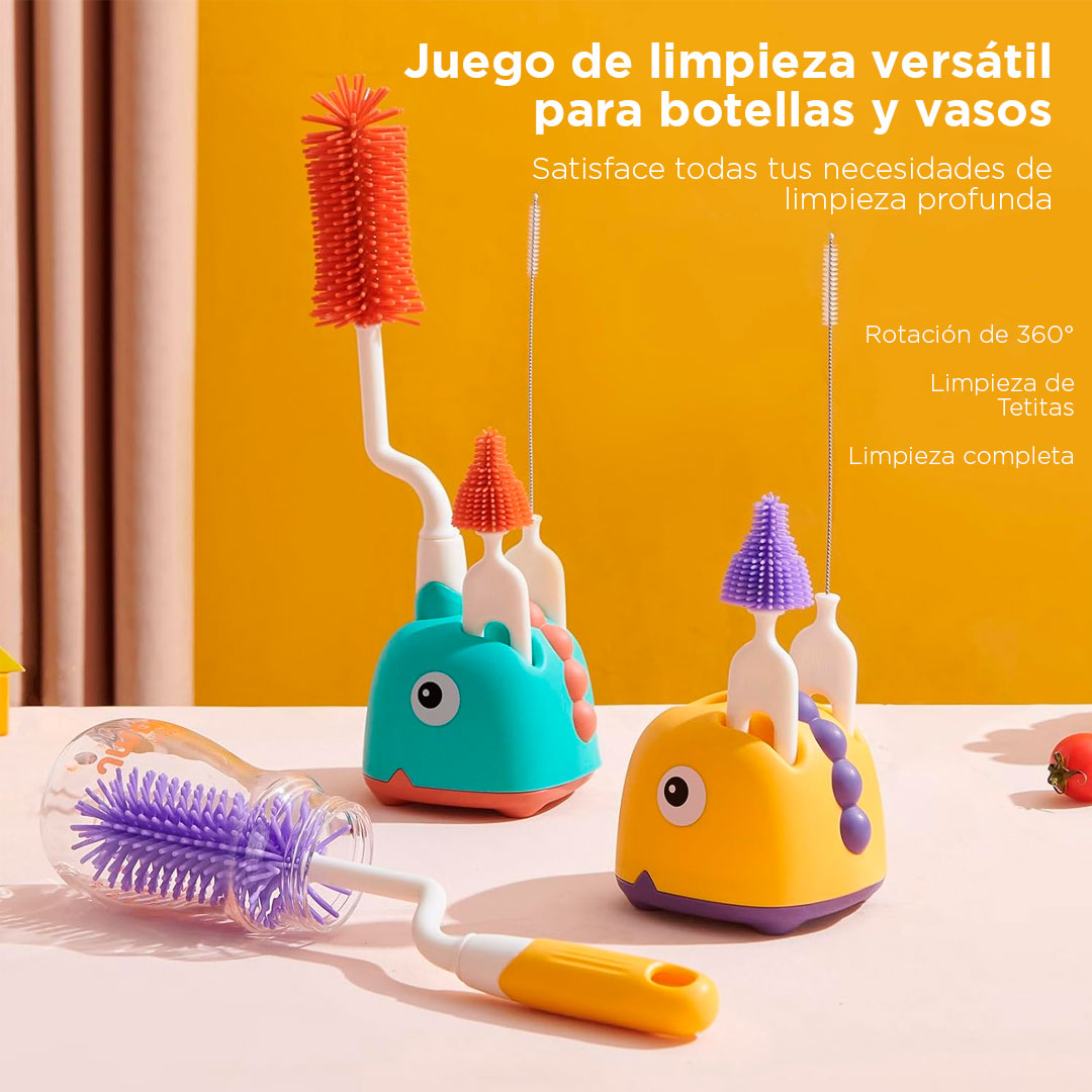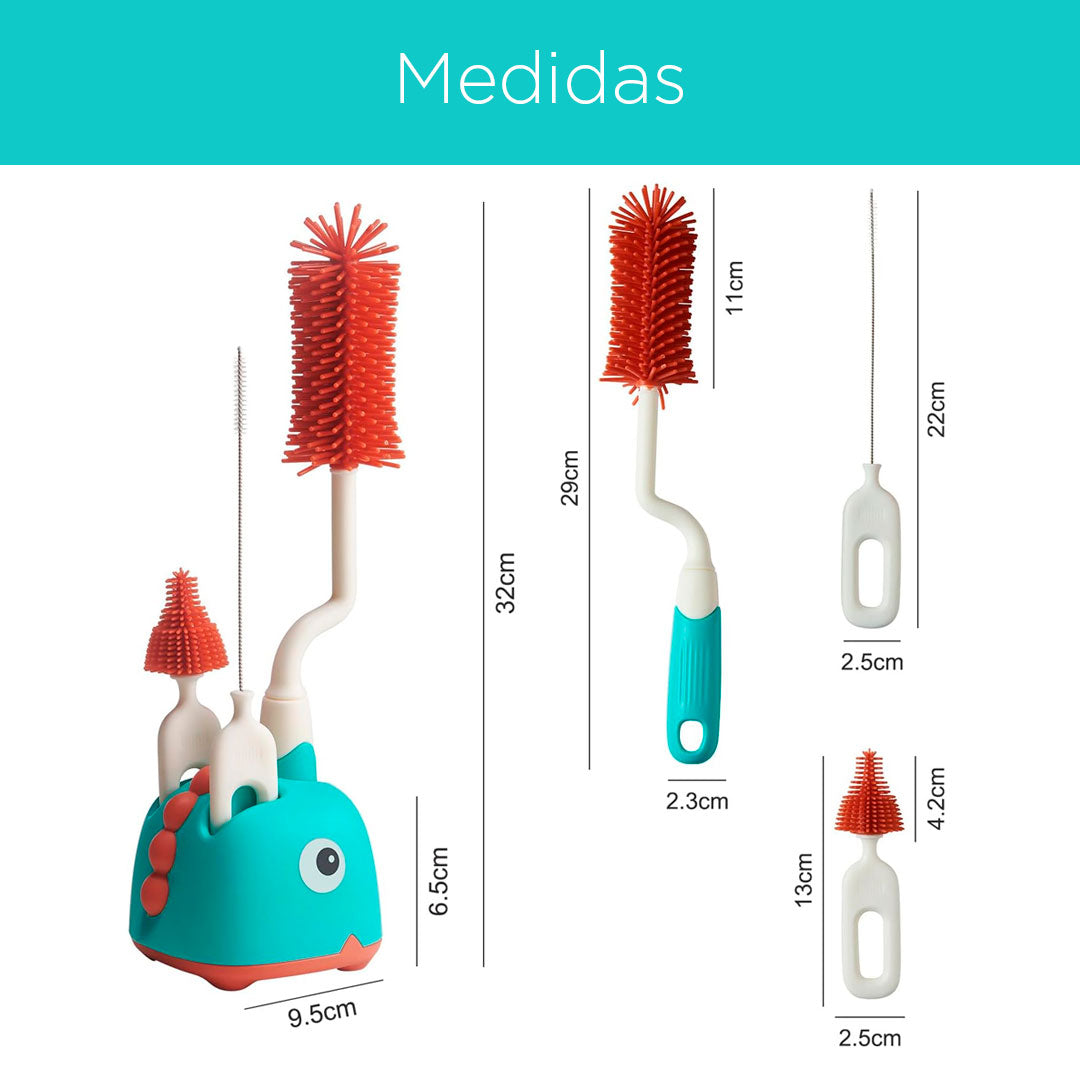 Nuestro Juego de cepillos con soporte para teteros y accesorios incluye: