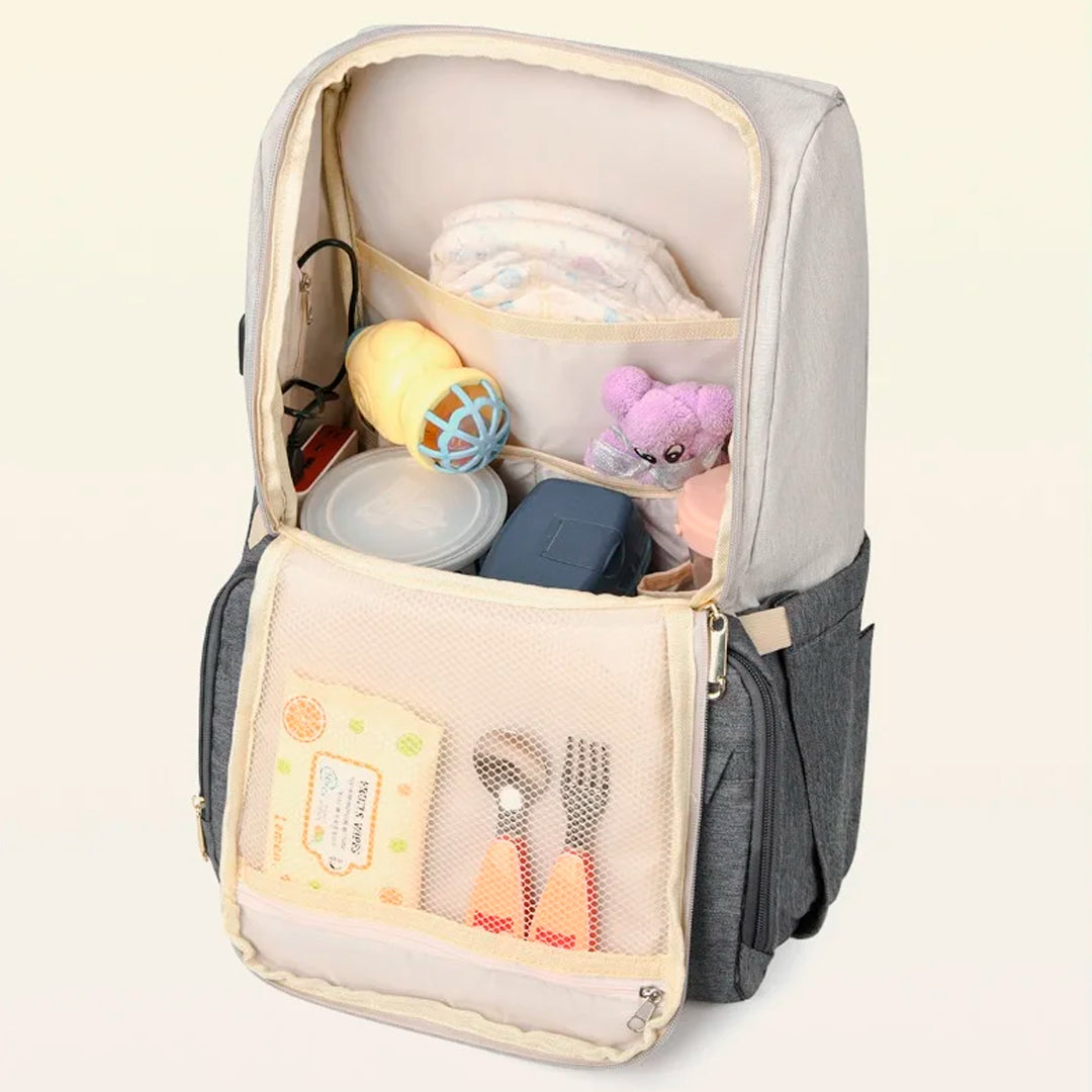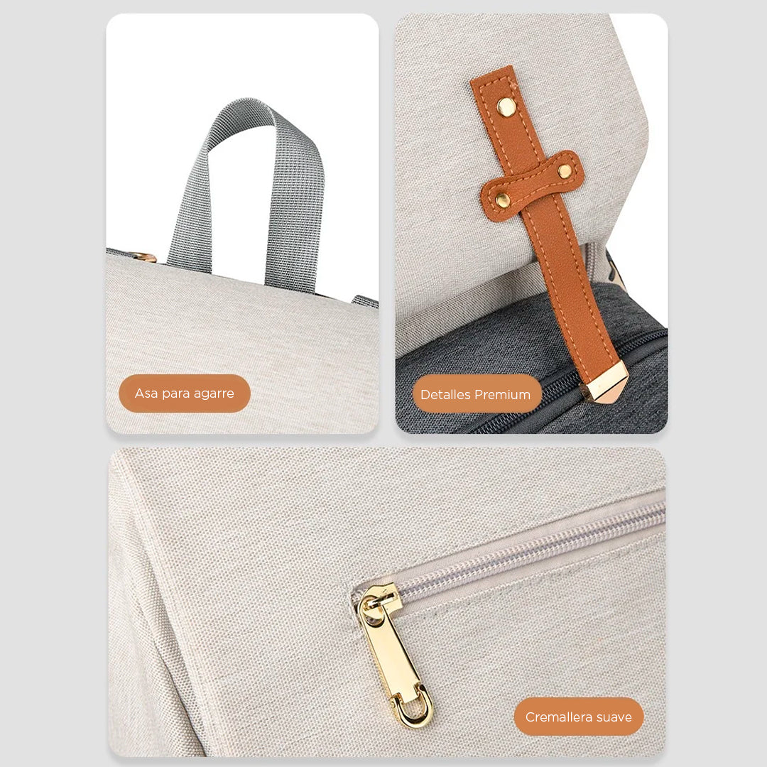 Pañalera de solapa y cambiador independiente, morral multifuncional de gran capacidad y bolsillos térmicos