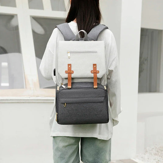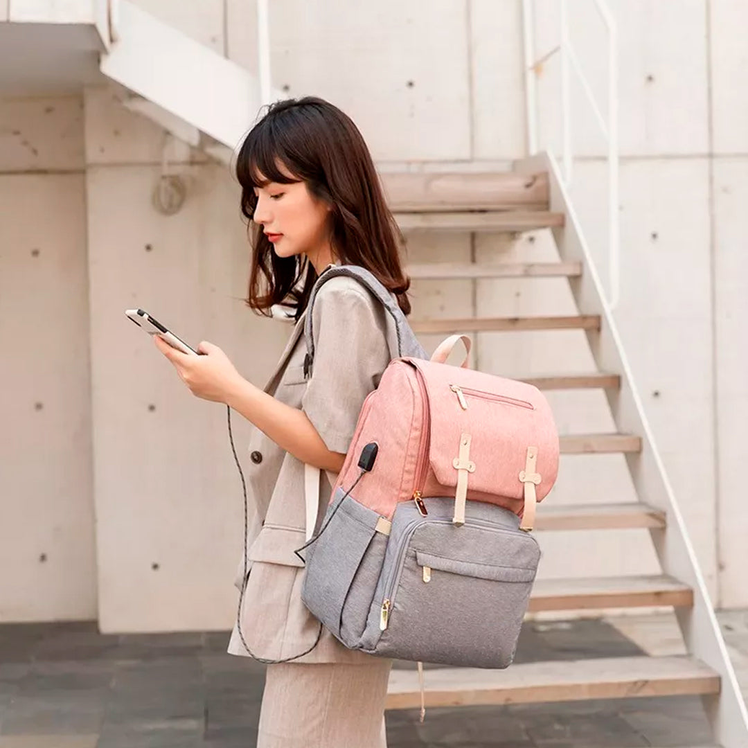 Pañalera de solapa y cambiador independiente de función múltiple: puede usar esta bolsa como mochila. Es muy elegante y adecuada para muchas ocasiones, como ir de compras, viajar, etc.