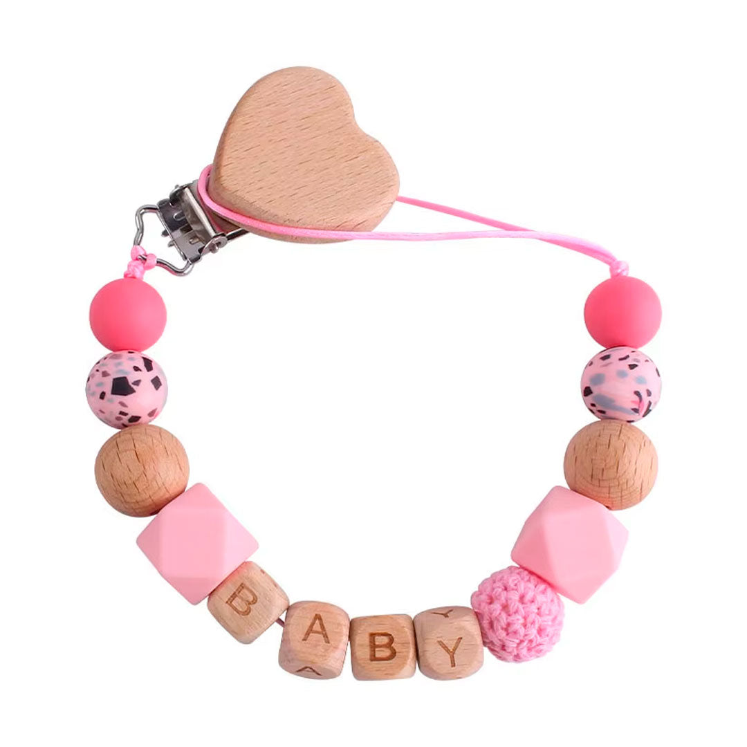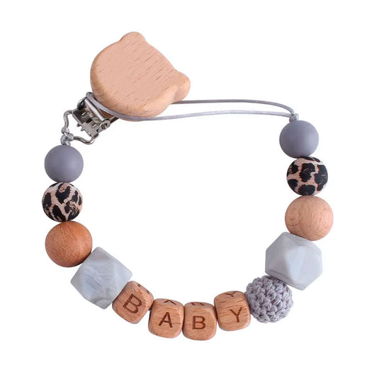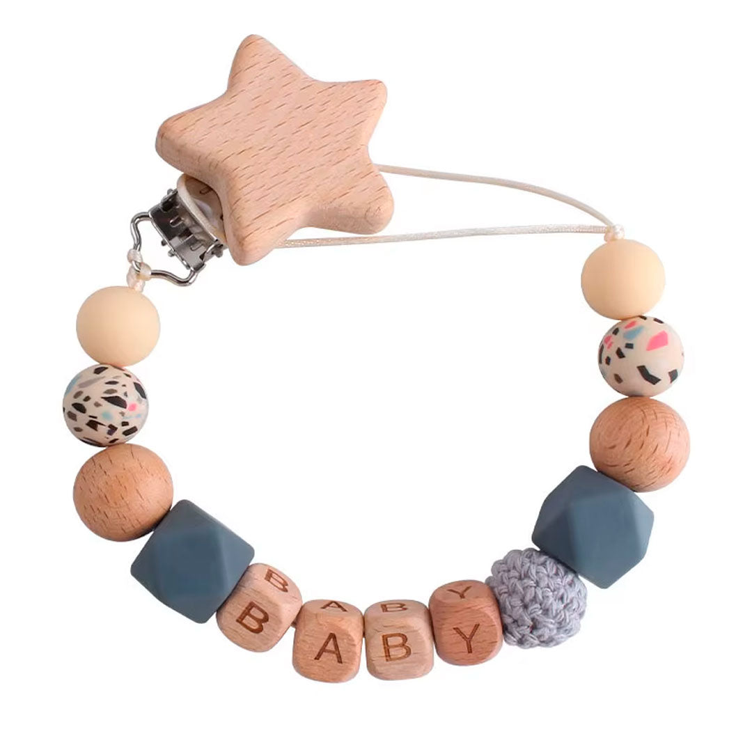 Descubre nuestro encantador Portachupas con detalles en madera tallada para bebé, diseñado especialmente para los más pequeños. Este elegante accesorio cuenta con detalles en madera tallada y un adorable charm en formas adorables que añade un toque de magia. La cadena es completamente libre de BPA, garantizando la seguridad de tu bebé, mientras que el práctico clip permite sujetarlo fácilmente a la ropa. ¡Haz que cada momento sea especial y seguro con este hermoso portachupas!