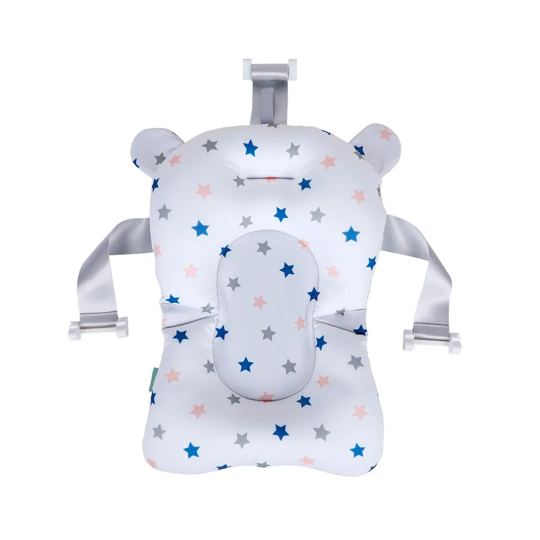 Almohadilla para la bañera con orejitas, con un divertido diseño de estrellas. Cuenta con un diseño ergonómico para el cuidado del desarrollo del bebé.