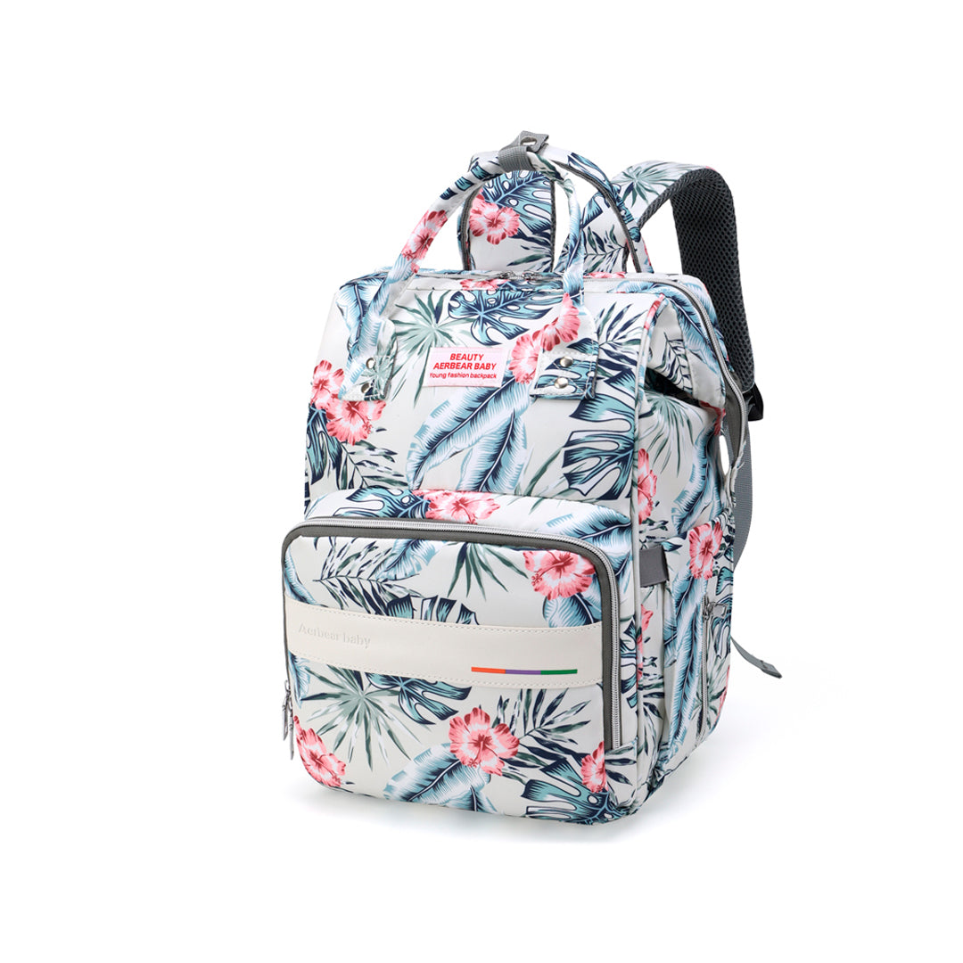 Pañalera multifuncional con diseño estampado tipo morral para bebés para cargar en la espalda.