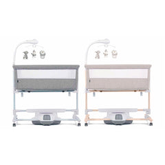 La Cuna colecho eléctrica con altura ajustable cuenta con 12 dulces melodías que ayudan a calmar y entretener a tu bebé.
