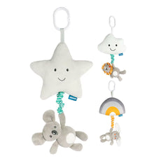 Descubre nuestro encantador Móvil colgante con caja de música para bebé, que viene en tres adorables peluches colgando de un gancho. Este móvil de cuna de cuerda no solo embellece la habitación, sino que también incluye una caja de música que calma al pequeño con suaves melodías. Cada peluche es un sonajero que emite un divertido pitido al apretarlo, estimulando los sentidos del bebé. Ideal para usar en el coche, carro o cuna, este móvil es perfecto para acompañar a tu pequeño en sus momentos de descanso y juego.
