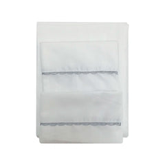 Sábana ajustable para colchón corral con lindo bordado en color gris, que van bien con cualquier ambiente.