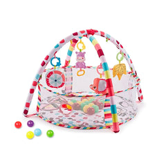 Este Gimnasio 3 en 1 corral redondo con tapete, móviles y pelotitas lleno de color y diversión estimula todos los sentidos del bebé desde sus primeros meses.