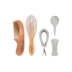 Kit esencial de 4pz para el cuidado del bebé, con tijeras punta redonda para las uñas, cepillo para el cabello, peine con cerdas redondas, aspirador nasal en silicona, 100% libre de BPA - Dr Brown's