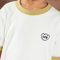 Camiseta blanca con cuello verde Retroclover, hecha en material de alta calidad, suave al tacto, diseño minimalista en color marfil con detalles en verde - LOBSTER mini