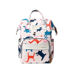 Pañalera multifuncional blanca con estampado, hecha con un estilo morral con gran capacidad de almacenamiento, es ideal para llevar todo lo que tu bebé necesita en sus paseos fuera de casa.