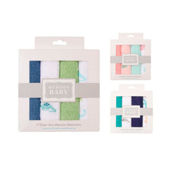Set en caja de babitas en algodón x4 unidades, paquete de toallitas de diferentes colores y diseños para bebés, hechas en material suave y absorbente, de tamaño ideal para llevar a todos lados - Hudson Baby