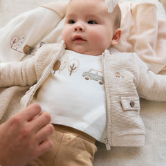 Conjunto 3pz color beige diseño bordado para recién nacido, set por una sudadera, un pantalón largo y camiseta a juego, cierre central delantero con cremallera, botón a presión en el cuello para facilitar la puesta - Mayoral