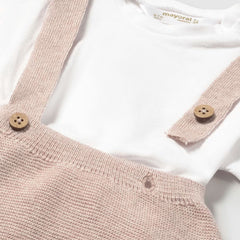 Conjunto tejido 3pz pantalón corto con tirantes para bebé, camiseta de tela transpirable, buzo tejido con botones, en algodón hipoalergénico - Mayoral