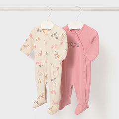 Pijama mameluco manga larga elefantes rosas, cuello redondo, cierre con botones a presión en la parte delantera, botones a presión en la entrepierna para facilitar la puesta de la prenda - Mayoral
