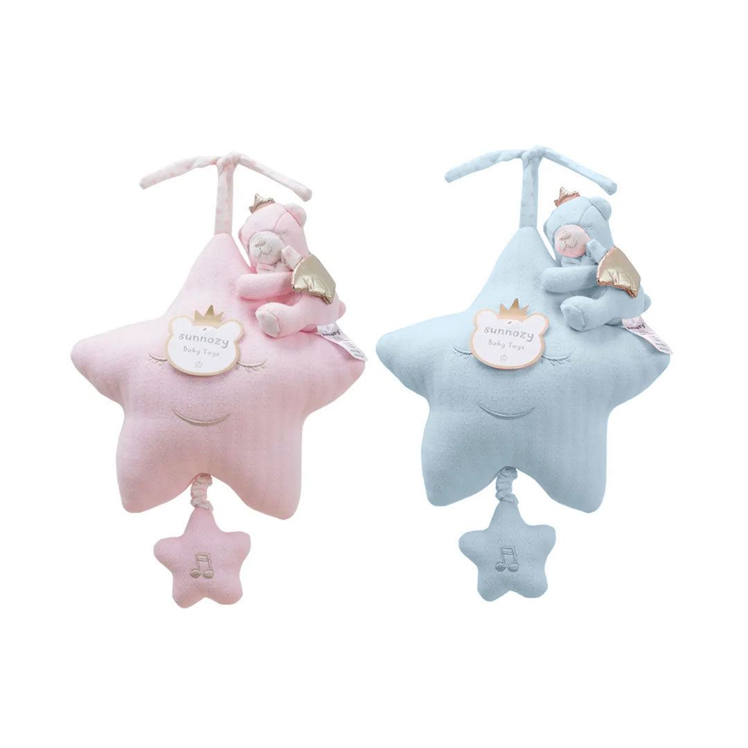 Móvil músical con diseño de estrella para cuna de bebé, con adorable diseño de estrella de peluche, caja de musica a cuerda, ideal para coche, carro o la cuna
