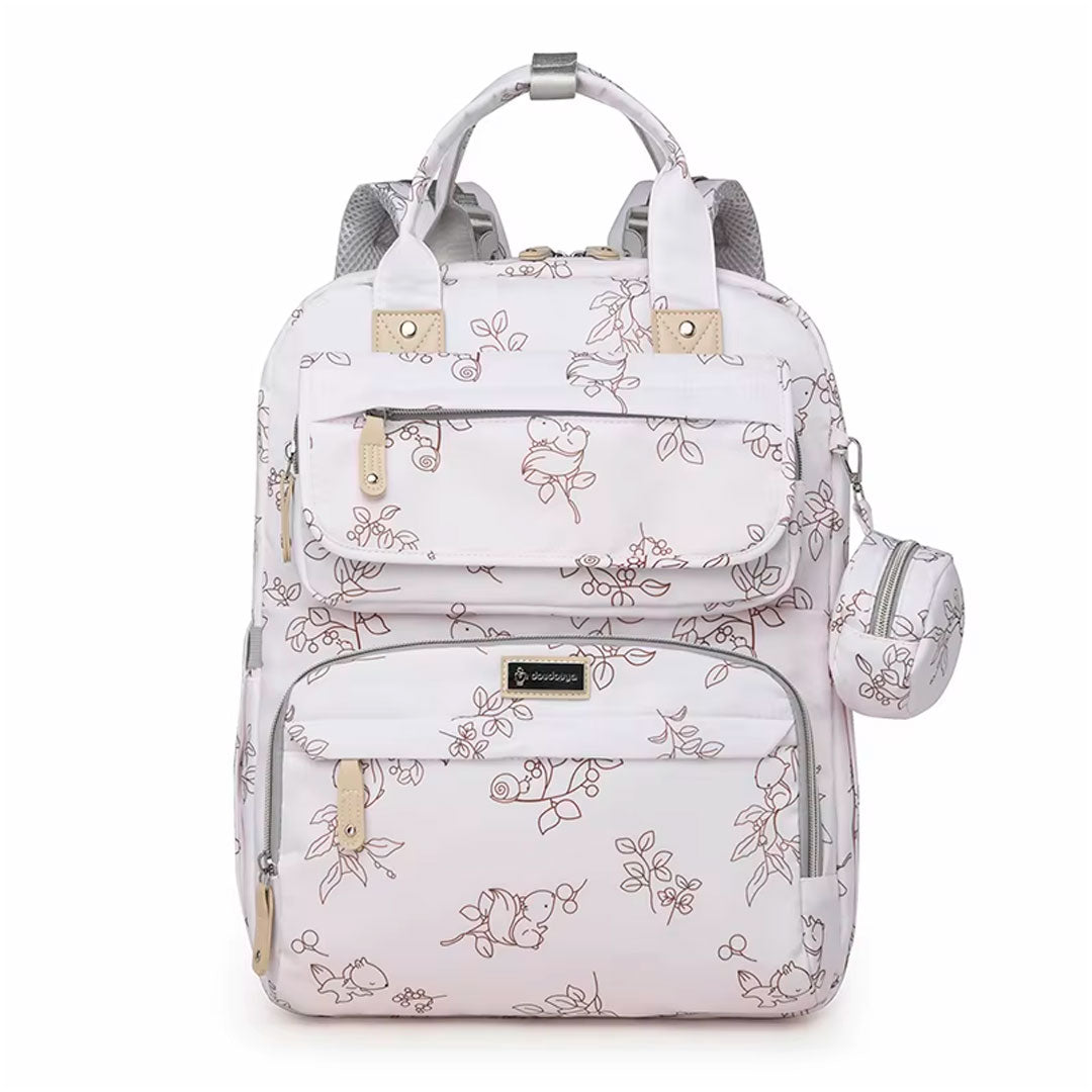 La Pañalera con diseño estampado con monedero Duoduoya es elegante y también práctica, incluye toda la funcionalidad de una bolsa de pañales para bebé. Hecha con materiales duraderos de alta calidad, incluyendo tela resistente al agua con tiradores de cuero, diseñada para niñas.