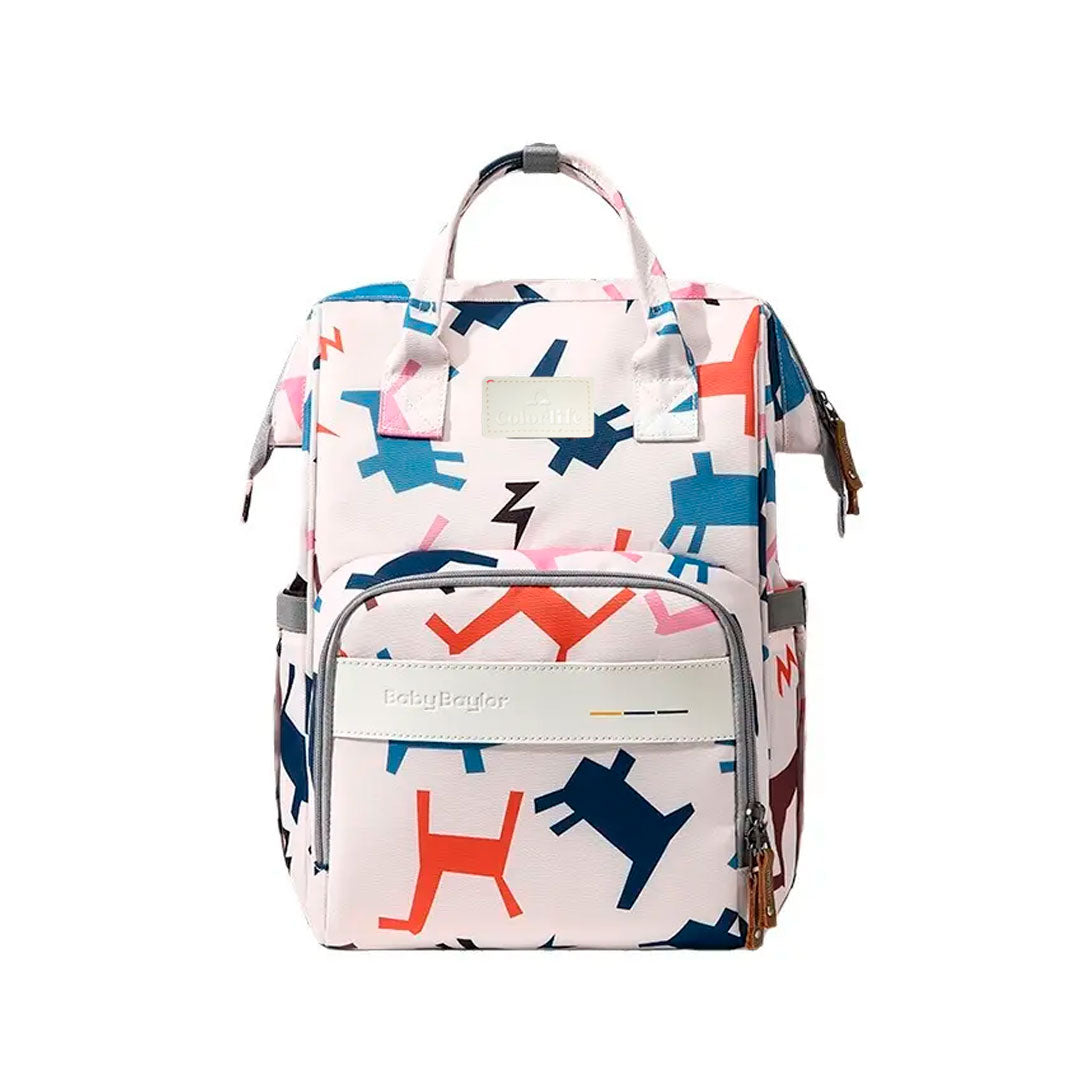 Pañalera multifuncional blanca con estampado, bolso tipo morral, cuenta con múltiples bolsillos indienprdientes, bolsillos térmicos, correas ajustables, amplio almacenamiento - Color & Life
