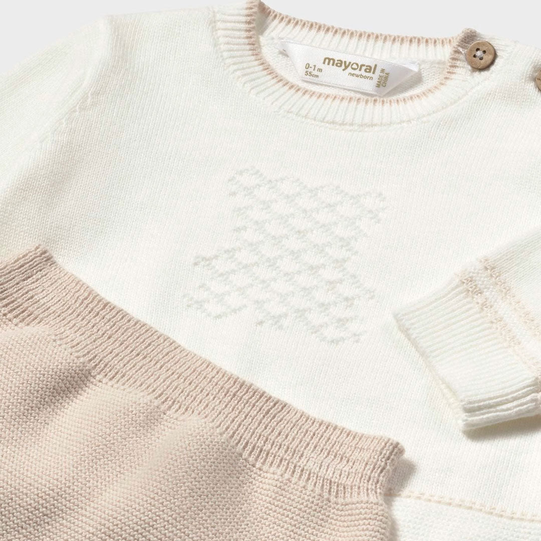 Conjunto tejido manga larga para recién nacido, pantalón con pies cerrados, con detalles bordados, talla pequeña para primer día - Mayoral