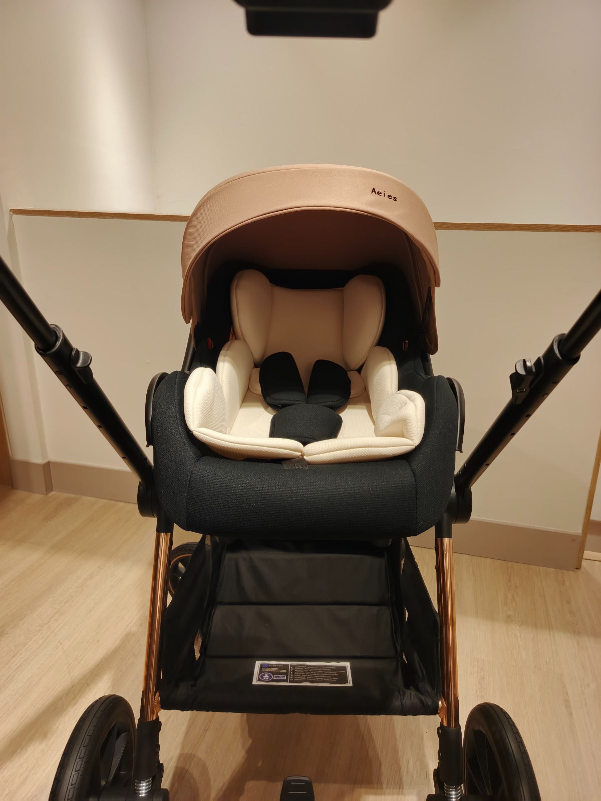 El asiento del Coche moisés Z1 3en1 con portabebés y pañalera es reversible, para poner a tu bebé mirando hacia el frente o mirándote a ti.