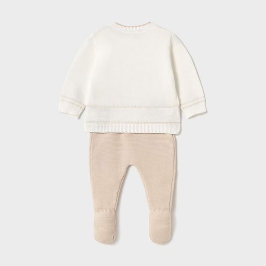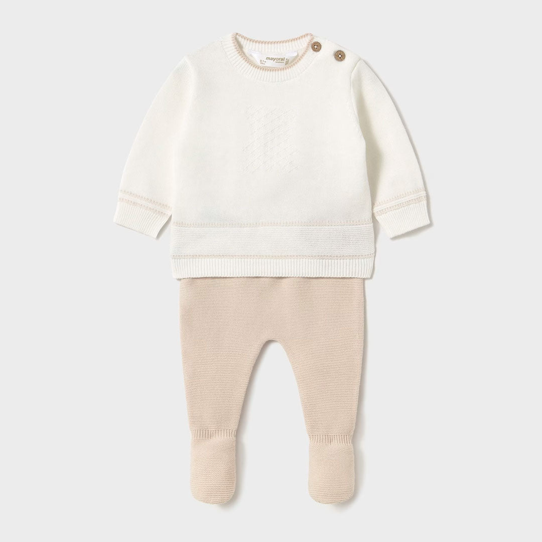 Conjunto tejido manga larga para recién nacido, pantalón con pies cerrados, con detalles bordados, talla pequeña para primer día - Mayoral