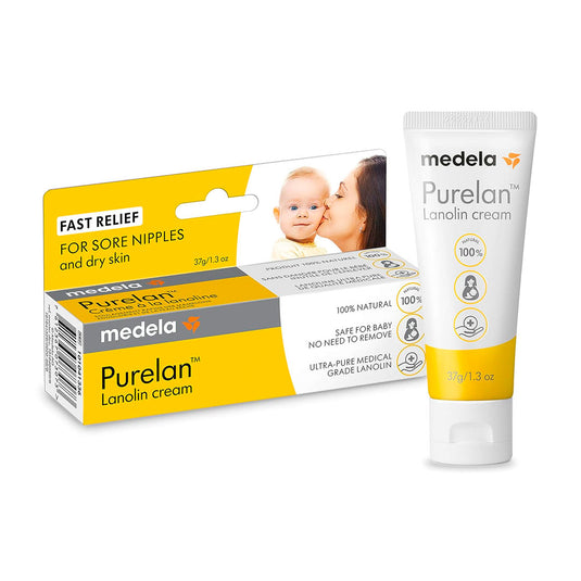 Durante los primeros días y semanas en los que se da el pecho con frecuencia, muchas mujeres experimentan dolor en los pezones y sequedad en la piel. La Crema de lanolina Purelan para pezones te ofrece un alivio rápido para los pezones sensibles y la sequedad de la piel. 1-4
