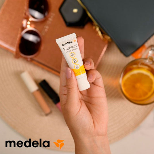 Utiliza Purelan™ en cada toma para aliviar el dolor y proteger tus pezones. No es necesario retirar la Crema de lanolina Purelan para pezones antes de dar el pecho.