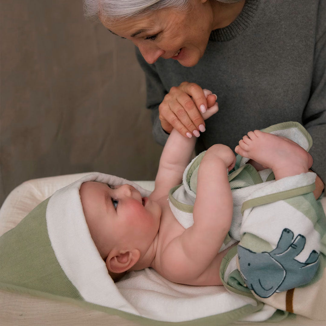 Descubre la suavidad y el encanto de la Toalla con capucha 100% algodón para bebé de Mayoral. Hechas 100% de algodón, estas toallas tipo capa son perfectas para envolver y secar a tu pequeño después del baño. Con divertidos diseños de animales, no solo mantendrán a tu bebé abrigado, sino que también añadirán un toque de alegría a su rutina. Su gran suavidad al contacto con la piel garantiza comodidad y calidez, convirtiéndolas en un imprescindible para el cuidado de tu bebé. ¡Haz que cada baño sea una experiencia divertida y acogedora!