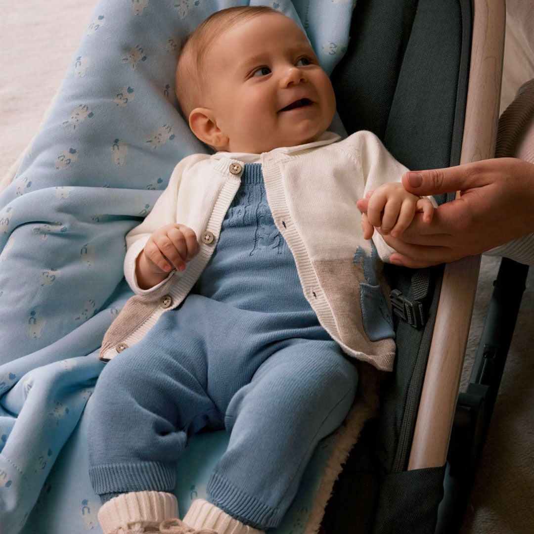 Descubre el adorable Conjunto 3 piezas con Overall tejido para recién nacido de Mayoral, diseñado especialmente para los más pequeños. Este encantador overall tejido para bebés cuenta con un cárdigan de manga larga y un cuello redondo que brindan comodidad y estilo. Su práctico cierre con botones a presión en la entrepierna facilita el cambio de pañales, haciendo que cada momento sea más sencillo para los papás. ¡Viste a tu bebé con este conjunto y déjalo lucir su ternura mientras pasea en su carrito!
