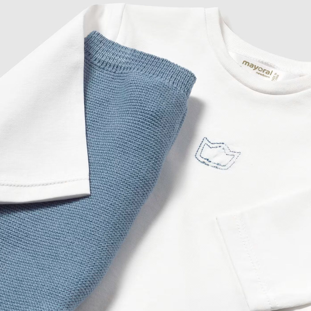 Conjunto 3pz buzo y pantalón tejido para recién nacido, camiseta manga larga suave y ligera, buzo en algodón tejido con detalles bordados - Mayoral