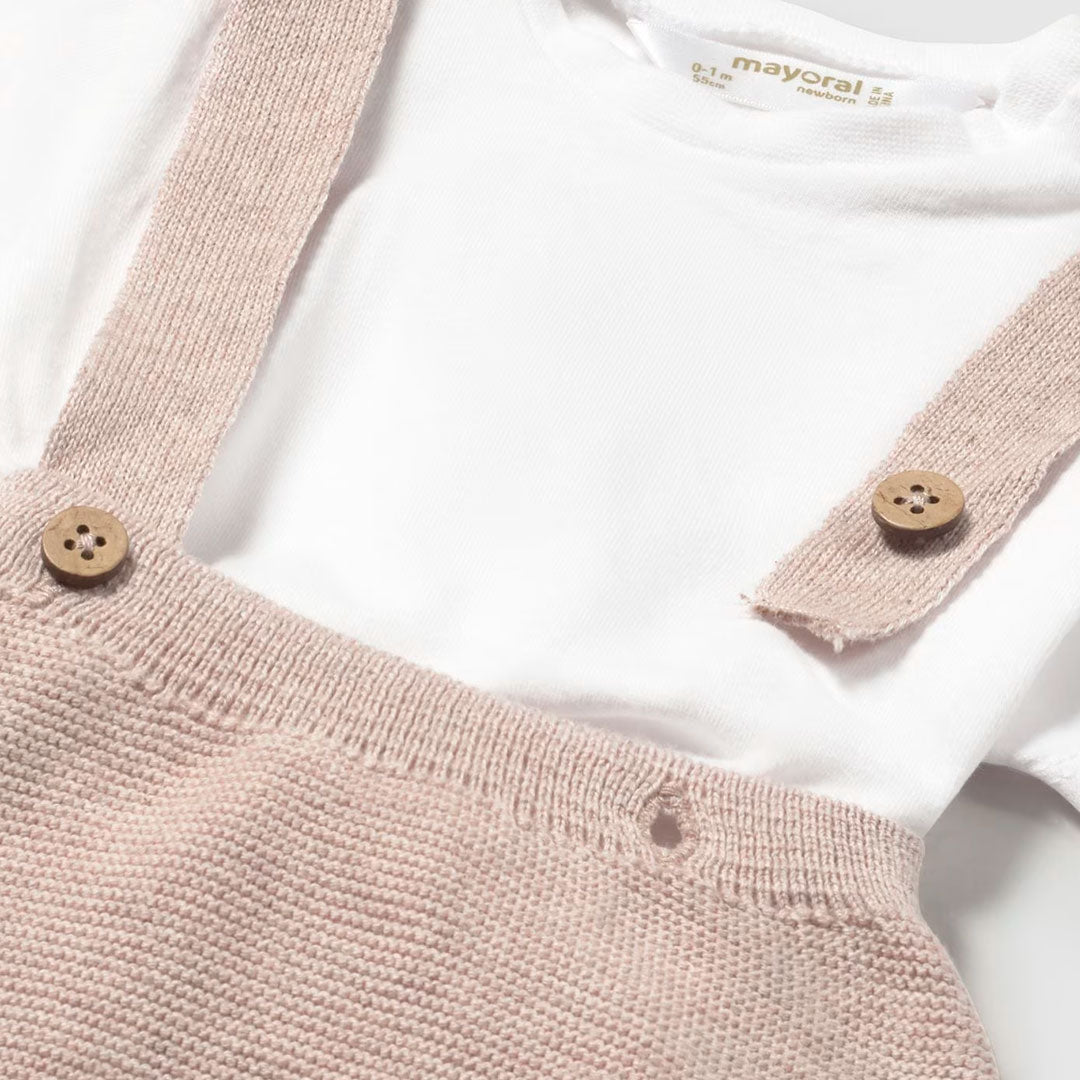 Conjunto tejido 3pz pantalón corto con tirantes para bebé, camiseta de tela transpirable, buzo tejido con botones, en algodón hipoalergénico - Mayoral