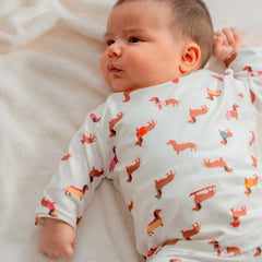 ¡La mejor opción para tu bebé! Esta Pijama estampada para bebé, de cuello redondo y manga larga con pantalón largo y doble cierre proporciona comodidad y facilidad para vestir a tu recién nacido y prepararlo para la hora de dormir. ¡Disfruta de sus estampados y de su suavidad en cada momento cercano con tu bebé!