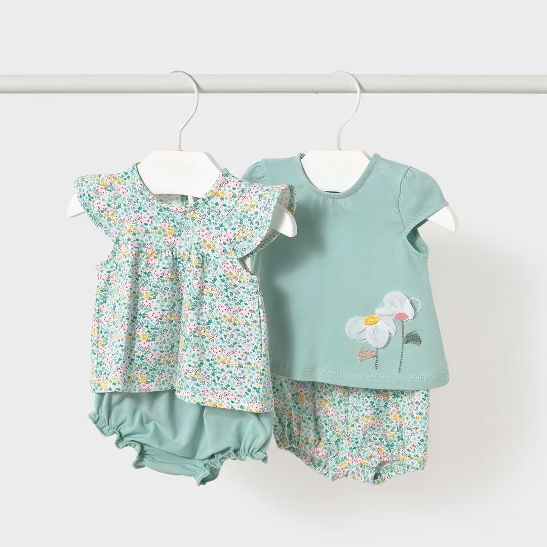 Set de 2pz blusa y panti verde menta y flores, blusa hecha en tela transpirable y fresca, panti con ajuste de pierna, estampado en patrón - Mayoral