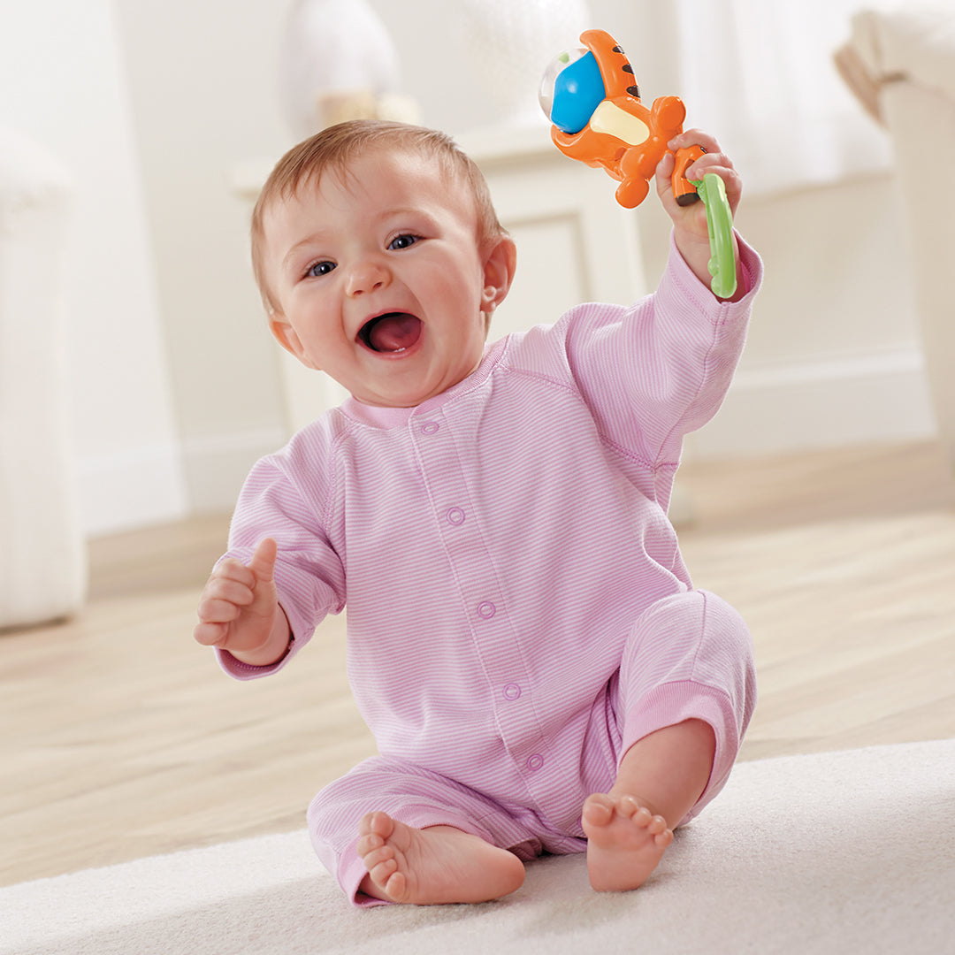 Con colores brillantes, material antialérgico, sonido suave y texturas diferentes para que tu bebé descubre nuevas sensaciones, este producto promete seguridad y durabilidad mientras tu pequeño vive una experiencia de juego divertida, además de que la variedad en tamaños y formas le facilita al bebé sostenerlo con comodidad y llevarlo consigo a todas partes. Algunas de nuestras alternativas de sonajeros para bebés ofrecen entretenimiento adicional como rasca encías ideales para la etapa de dentición, aros de encaje para estimular la motricidad, vibración y sonido integrado diferente al cascabel del sonajero para distraer y dar calma.