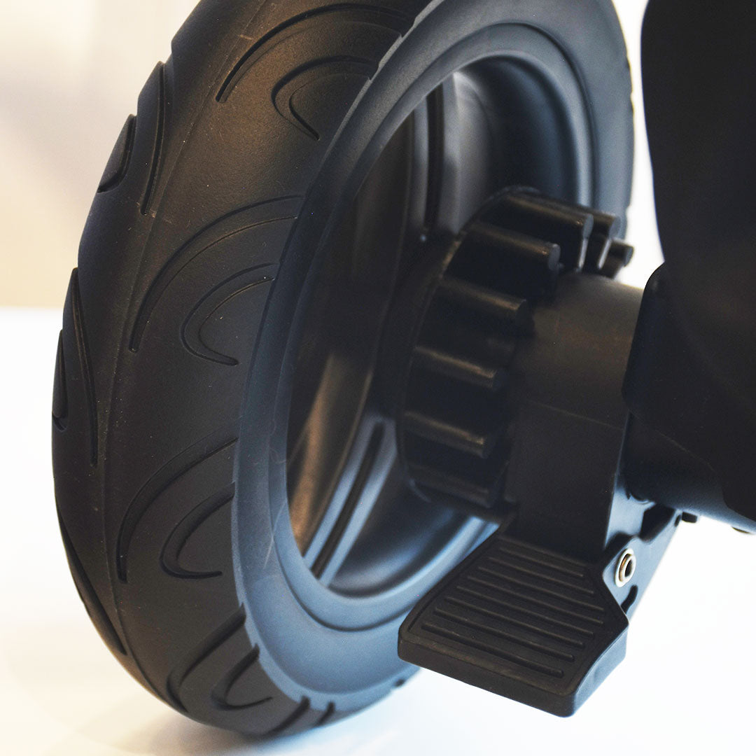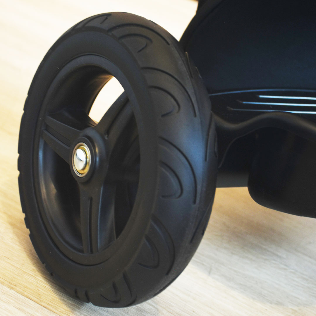Ruedas grandes y resistentes que proporcionan un paseo suave y estable, tanto en interiores como en exteriores.