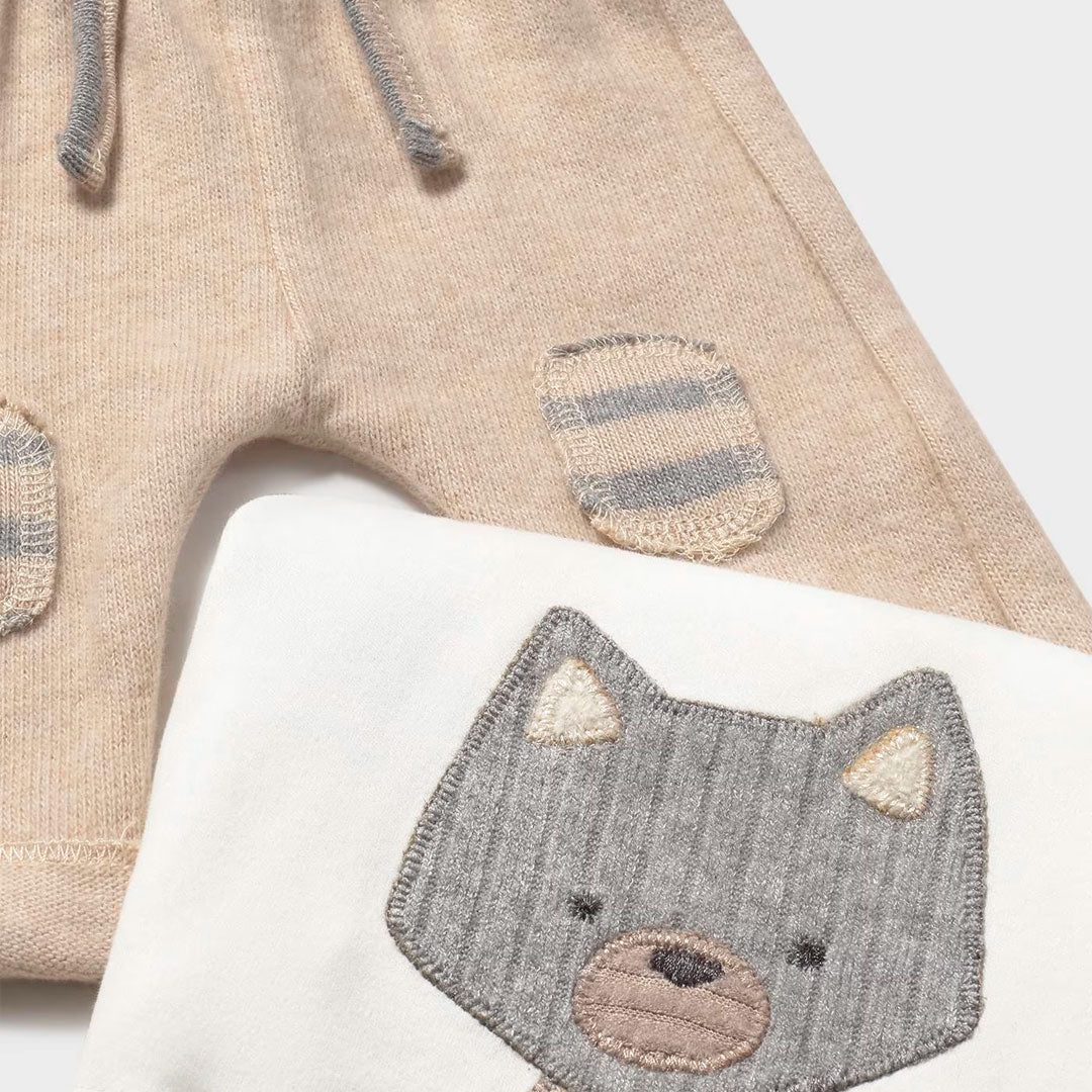 Conjunto de 3pz con diseño de zorrito para recién nacido, sudadera de manga larga, cierre con botones en la parte delantera, bolsillo en la parte delantera, camiseta de manga larga, pantalón con cinturilla elástica con cordón - Mayoral