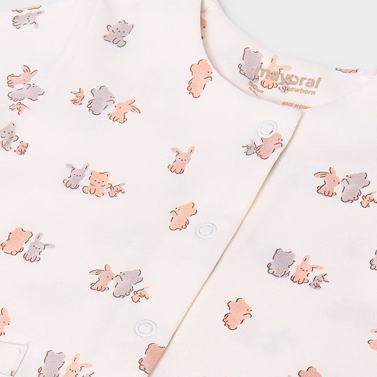 Conjunto de 4pz pijama, babero, gorro y medias a juego para bebé, pijama de manga corta, babero con diseño estampado, cuello cruzado y abertura lateral con botones a presión, con gorro y par de medias a juego - Mayoral