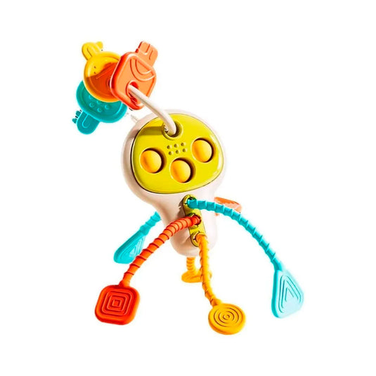 ¡Tu bebé se divertirá por horas con nuestra Llave educatica multifuncional para bebé! Su diseño colorido y actividades de cuerda, giros y sonidos estimularán su exploración y habilidades motoras. Un juguete cercano que fomenta la diversión y el descubrimiento en tu pequeño.