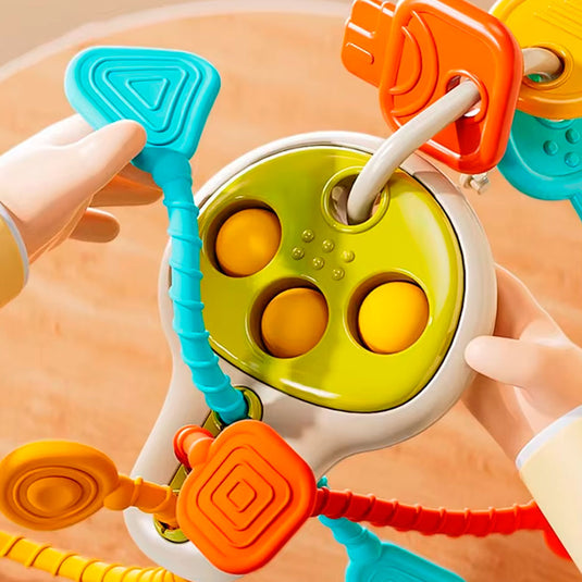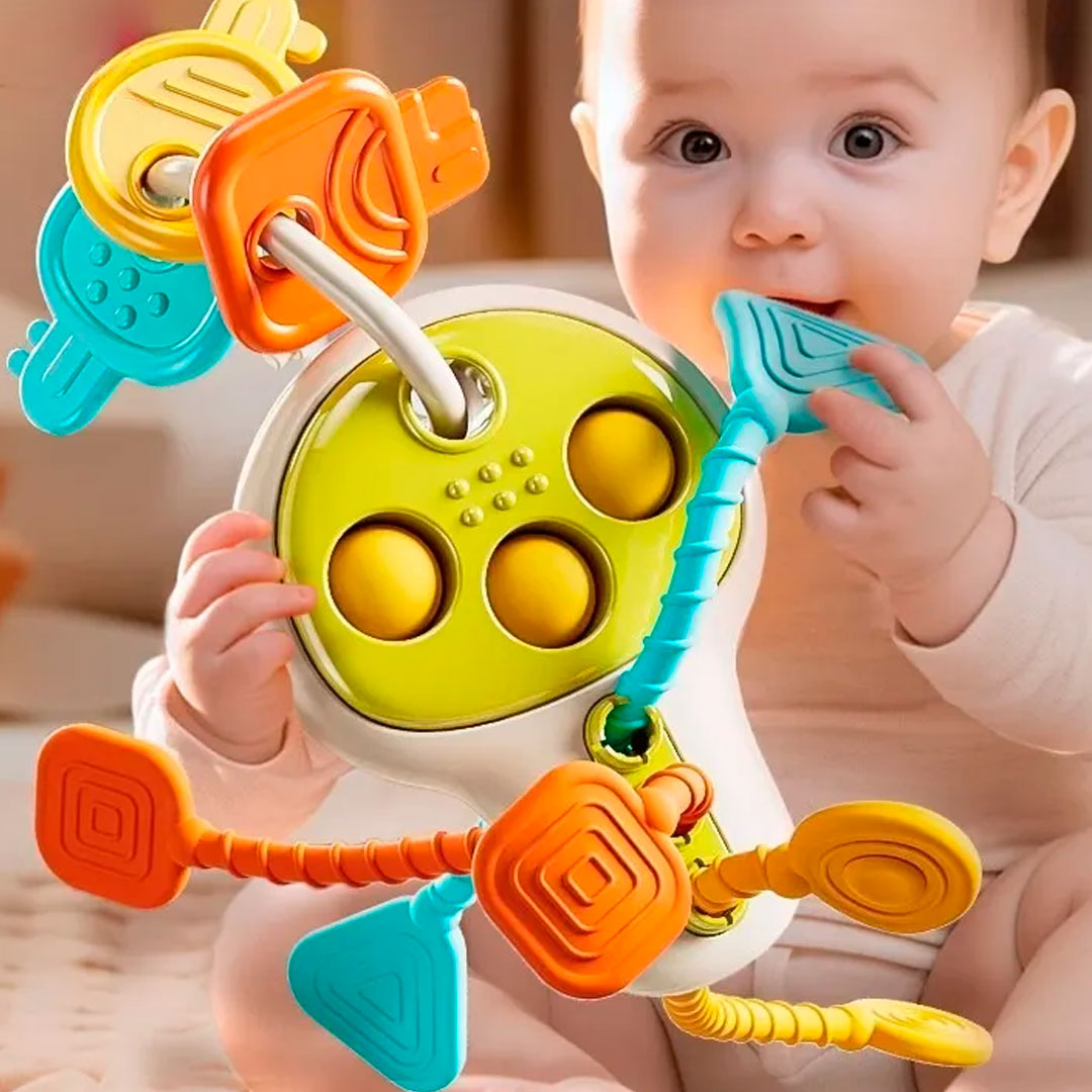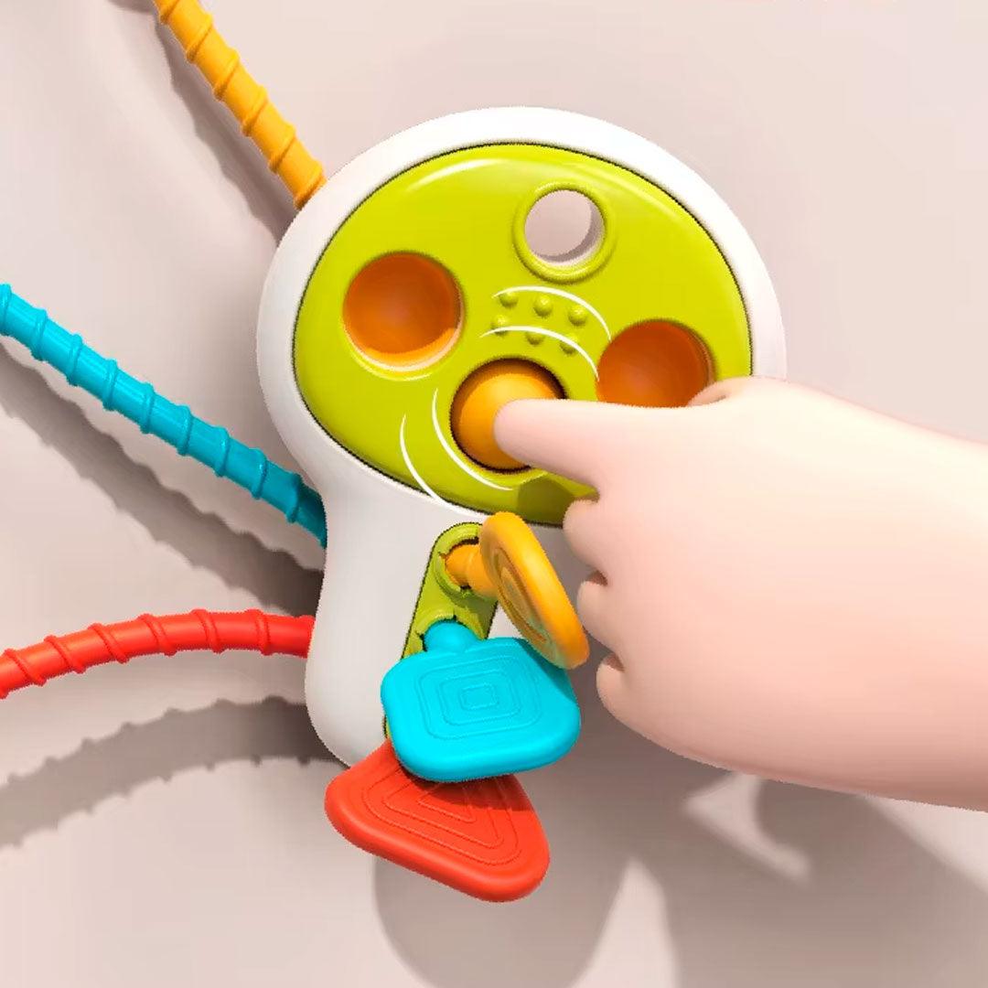 Con un diseño de juego flexible, esta Llave educatica multifuncional para bebé mejora la coordinación y sensibilidad de la mano de tu hijo. A medida que tiran y giran las cuerdas, se ejercitan y desarrollan habilidades motoras finas.