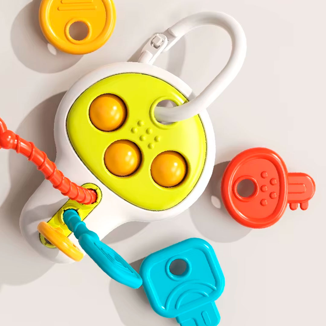 La Llave educatica multifuncional para bebé tiene abalorio coloridas integradas que hacen un sonido agradable cuando se sacude, estimulando la percepción auditiva del niño.