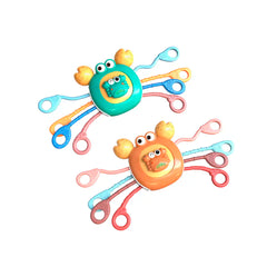 Juguete sensorial en forma de cangrejo, con colores que resultan muy atractivos para los niños.