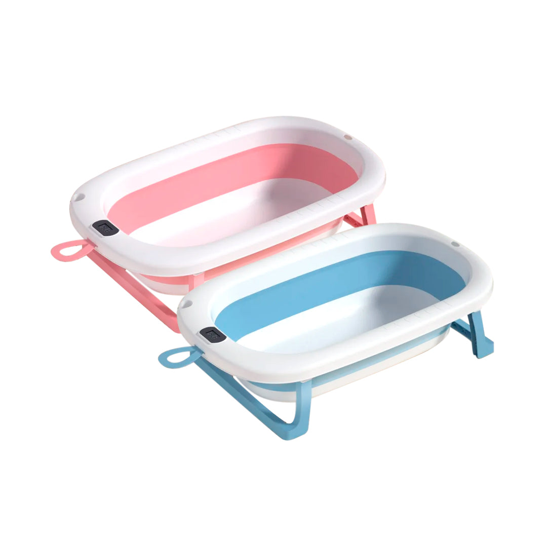 Bañera plegable que incluye termómetro para visualizar la temperatura del agua.