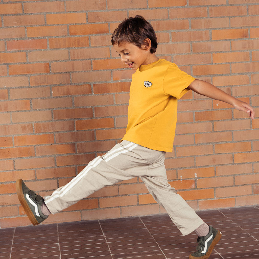 Así como con un abrazo, una buena canción o un helado de vainilla, la Camiseta infantil MIXER color sol tostado siempre van bien con todo.