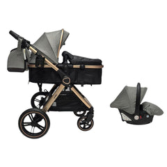 Coche 3 en 1 moisés, portabebés y paseador plegable, el portabebés se puede colocar en la estructura, con espaldar ajustable, estructura desmontable y sistema de plegado compacto, hecho en material resistente de alta calidad - Mobilu