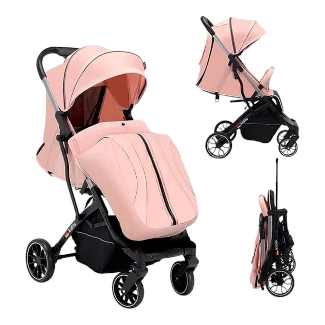 Coche paseador con plegado estilo maleta, espaldar ajustable, con freno de ruedas traseras, capota desplegable para cubrirlo del sol, y cubrepiés desmontable - Kidilo
